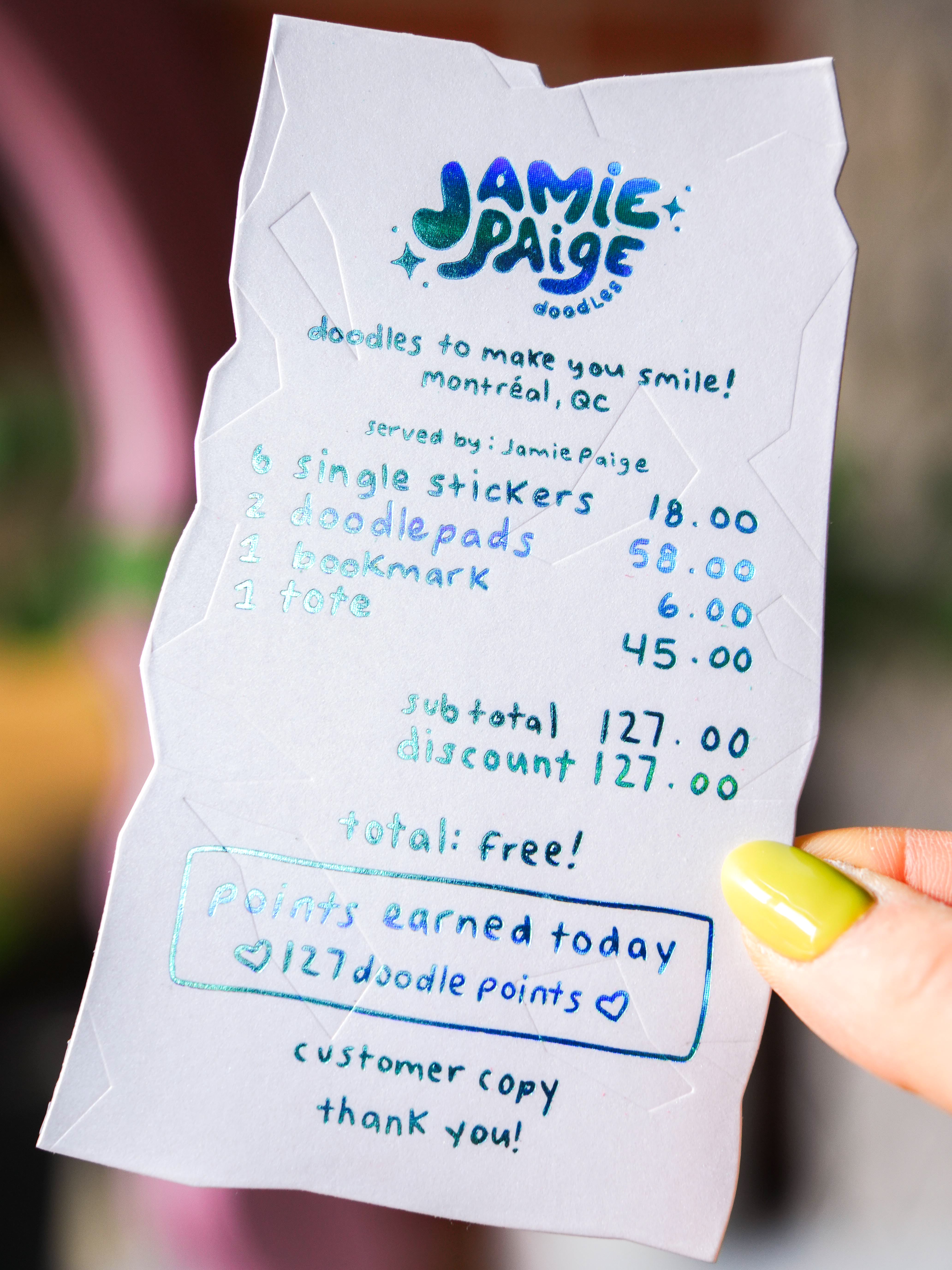 sure, a crumpled receipt can make a good bookmark, but if you want to upgrade to something a bit cuter, say hello to the letterpressed, foiled Jamie Paige Doodles 'crumpled' receipt!