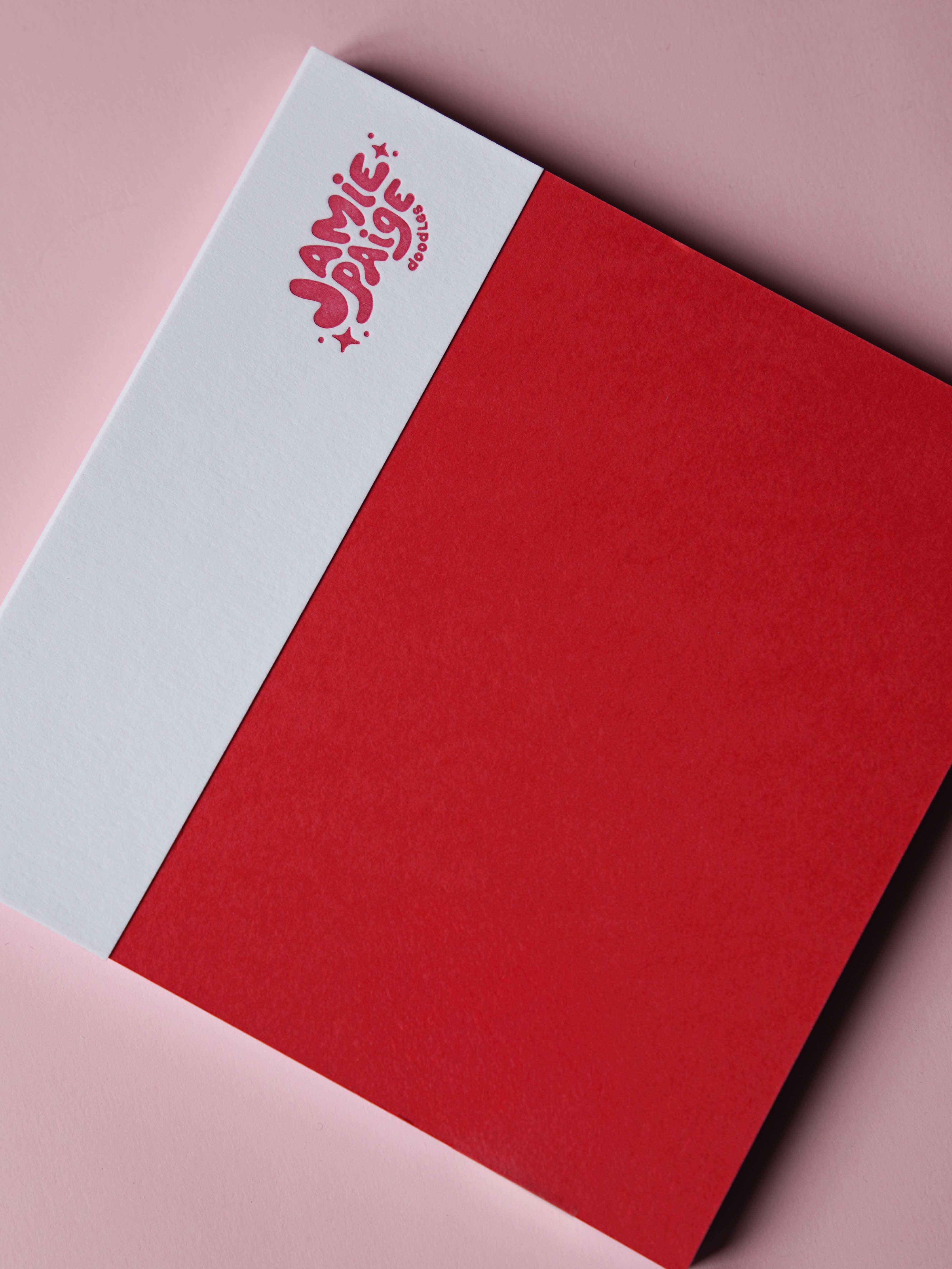 Letterpressed cover text in red ink